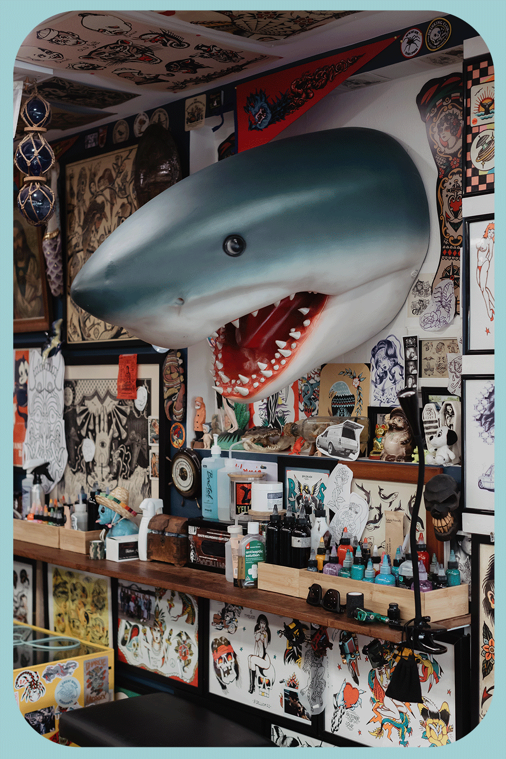 This studio has been Sam’s dream for many years before its opening and is packed floor to ceiling with tattoo art and collectibles.
