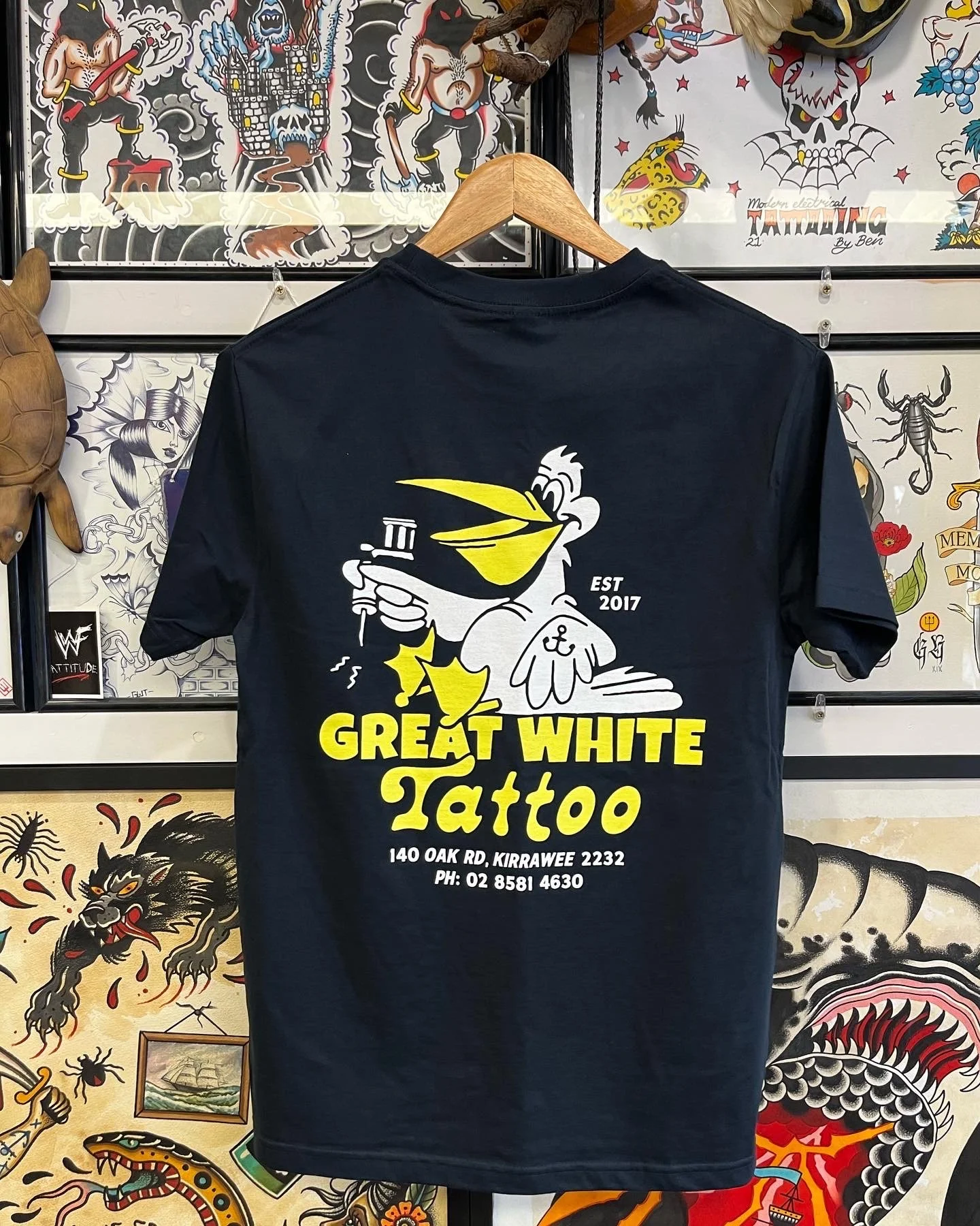 Categories: All Merch Shop All | Merch | GWT Surf Pelican Hat A$40.00 Pelican Great White Tattoo Tee (Navy Edition) A$40.00 Hula Girl Great White Tattoo Tee (Blue Edition) A$40.00 SK!N tattoo aftercare cream A$15.00 GWT Patch A$5.00 GWT Pelican Hat A$40.00 GWT Fishing Hat A$40.00 Fishing Great White Tattoo Crewneck Sale Price: A$50.00 Original Price: A$70.00 Sale Pelican Tattooer Great White Tattoo Tee A$40.00 Fish Rider Great White Tattoo Tee A$40.00 Great White Tattoo Round Sunnies Sale Price: A$10.00 Original Price: A$20.00 Sale Great White Tattoo Square Sunnies Sale Price: A$10.00 Original Price: A$20.00 Sale Great White Tattoo Stubbie Holder Sale Price: A$5.00 Original Price: A$10.00 Sold out Great White Tattoo Tote Sale Price: A$30.00 Original Price: A$40.00 Sale Great White Tattoo Beach Towel Sale Price: A$35.00 Original Price: A$70.00 Sale Great White Tattoo Summer Beach Pack Sale Price: A$60.00 Original Price: A$125.00 Sale Gift Certificate from A$50.00 Great White Tattoo Surf Tee Sale Price: A$5.00 Original Price: A$40.00 Sold out Hula girl Tee Sale Price: A$5.00 Original Price: A$40.00 Sold out Sam Kane Surfing Tiki Tee Sale Price: A$5.00 Original Price: A$40.00 Sale Classic Great White Tattoo Tee Sale Price: A$5.00 Original Price: A$40.00 Sold out Bargain Stock Sale Price: A$5.00 Original Price: A$40.00 Sold out Ben Deluca Tee A$40.00 Sam Kane Skull Book A$90.00